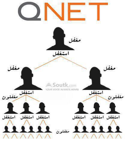 استحضر ممثل Qnet كل تركيزي وذلك بعد أكثر من ساعة ونصف من الإعداد لكي يستعرض النموذج الربحي لفكرة الشبكة. يقوم هيكل العمولات على مبدأ أساسي ألا و هو ثنائية التفرع. فالحد الأقصى لأي مستوى من الشبكة فردان و كل منهما يندرج تحته شخصان إلى آخره. أول مصدر للدخل حين الانضمام هو العمولة المباشرة والتي تتراوح بين 6 % و13 % عند بيع منتجات لأفراد جدد وهو أسلوب العمولات التقليدي ويدر على المشترك اول مبلغ ( حوالي 50$). وعند انضمام مشتركان آخران تحت كل منهما تأتي العمولة الأهم و هي مبلغ حوالي 150$. و بذلك يحصل العضو على 200$ عن كل 6 أعضاء ينضمون إلى مستوى أسفله في الشبكة شرطة احترام ثنائية التفرع والذي يضمن استمرار التوسع. ويكون مجمل محصول الاشتراكات على هذه المجموعة اذا افترضنا اختيارها لقرص الطاقة (وهو من أرخص السلع المعروضة) 7×560= 3920$. يأخذ رأس الهرم 200$ والشخصان الذين تحته 50$ كلاهما أي أن Qnet تتقاضى ما يزيد عن 3600$ لقاء 7 أقراص من الزجاج! ويتعارض ذلك مع مفهوم «الشبكة» في حد ذاته حيث أن «التشابك» أي تعدد وتداخل الأطراف هو ما يعرفها في الأصل. فحين يضاف مبدأ ثنائية التفرع تظهر مستويات متصاعدة في تشكيل ذو قاعدة عريضة وقمة مدببة وذلك أقرب إلى الهيكل الهرمي. و في حال تمكن أحد الأعضاء من إقناع اكثر من الفردين الذي بدأ بهما يقوم بإدراج الأفراد الجدد تحت من يجدون صعوبة في التجنيد من فريقه كي لا يتوقف الامتداد الطولي أسفل الشبكة. لذلك لا ترى الكثير من الأطراف أي فرق بين التسويق الشبكي والسلاسل الهرمية. ففي كلتا الحالتين يعتمد النموذج الربحي على انضمام أعضاء جدد للشبكة وليس على تنافسية المنتجات في حد ذاتها. فعلى عكس سائر الأنشطة الاقتصادية لا تخلق السلاسل الهرمية قيمة حقيقية مما يتسبب حتميا في انهيارها اذا ما توقف عدد المنضمين إليها عن التزايد المضطرد.